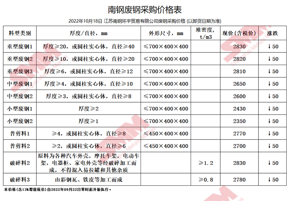 10月18日南京钢铁 废钢采购报价