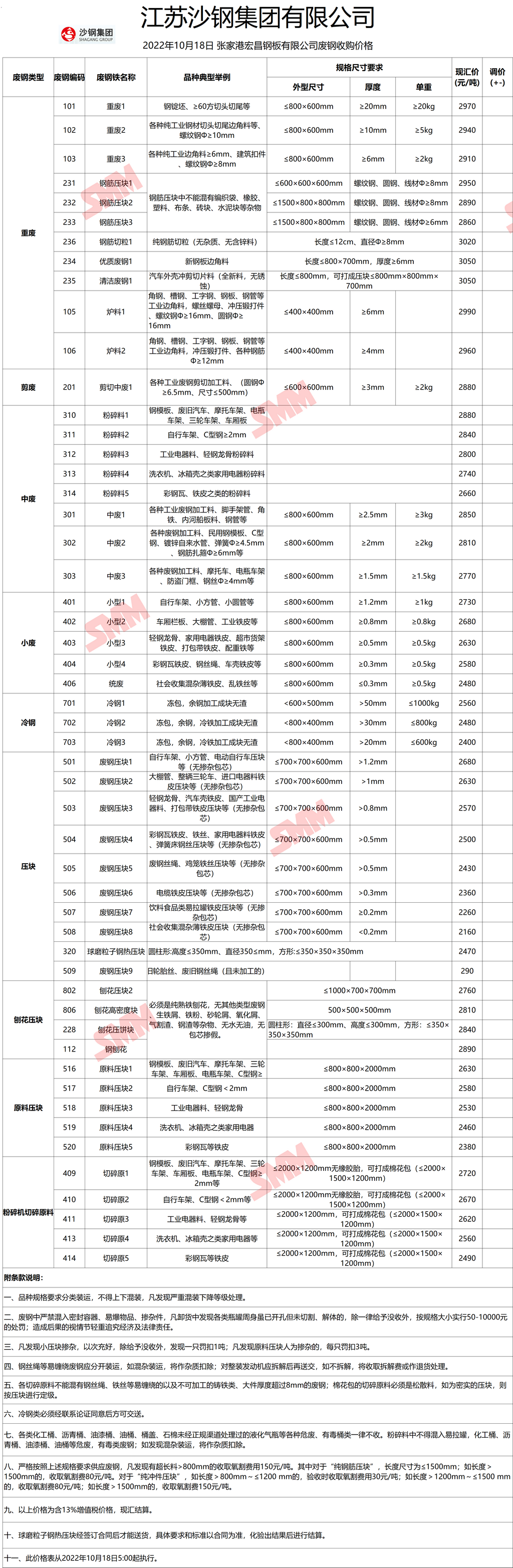 10月18日沙钢张家港基地 废钢收购报价
