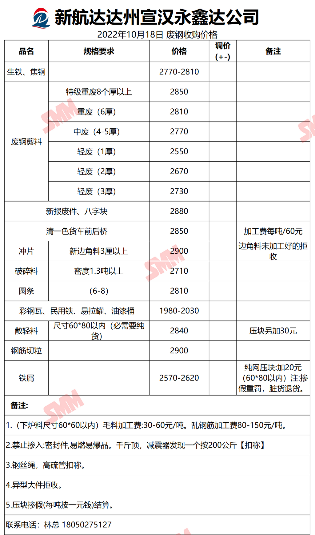 今日达州宣汉永鑫达 废钢收购报价已更新,有货的朋友欢迎联系我们!