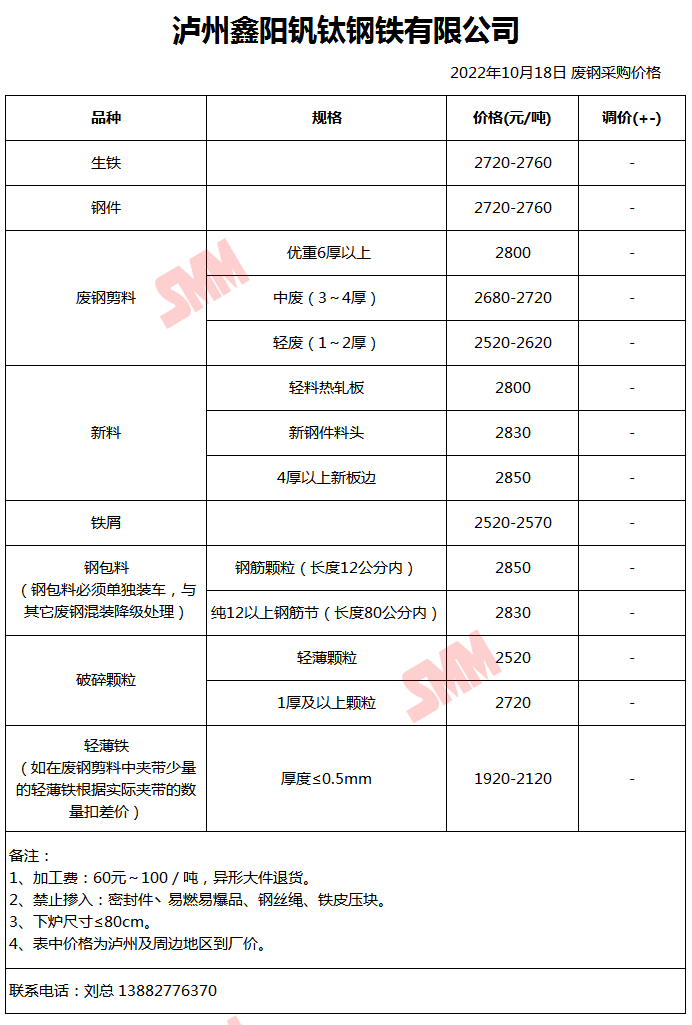 10月18日泸州鑫阳钒钛 废钢采购报价