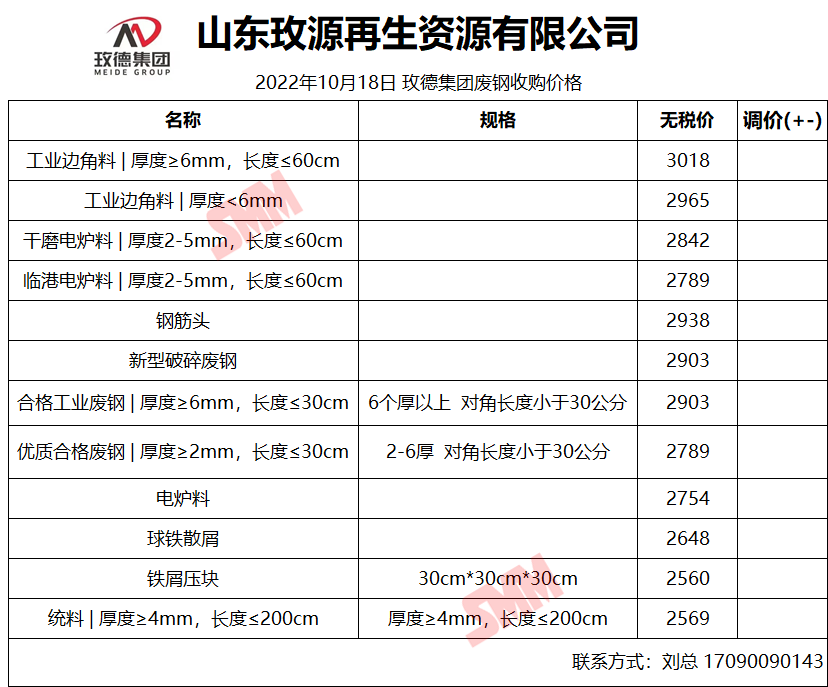 10月18日山东玫源再生 废钢收购报价