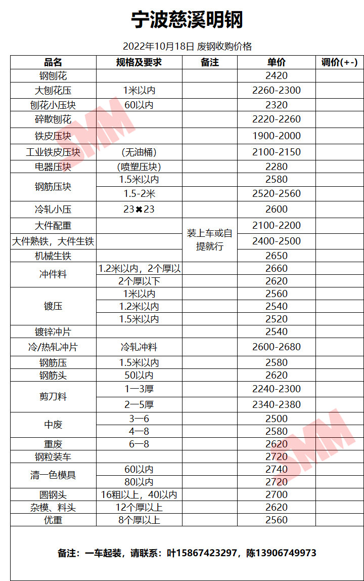 10月18日宁波慈溪明钢 废钢收购报价
