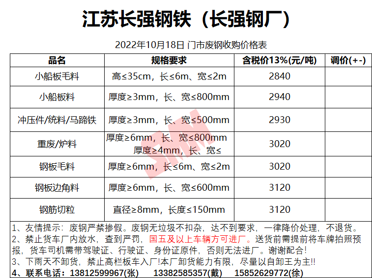 10月18日江苏长强钢铁 废钢收购报价