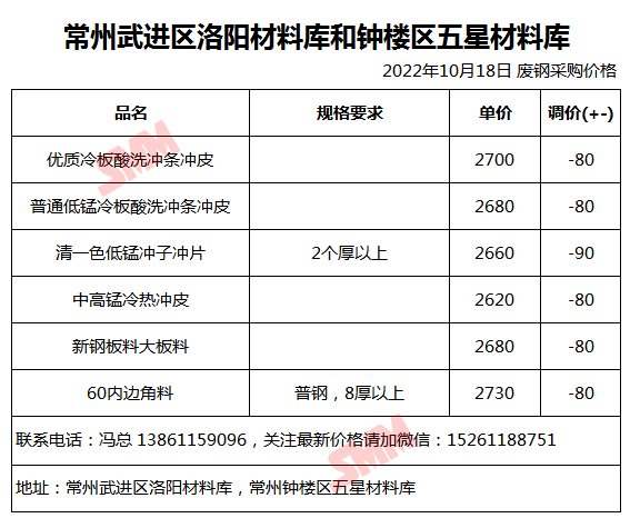 10月18日常州武进区洛阳和钟楼区五星材料库 废钢采购二次报价