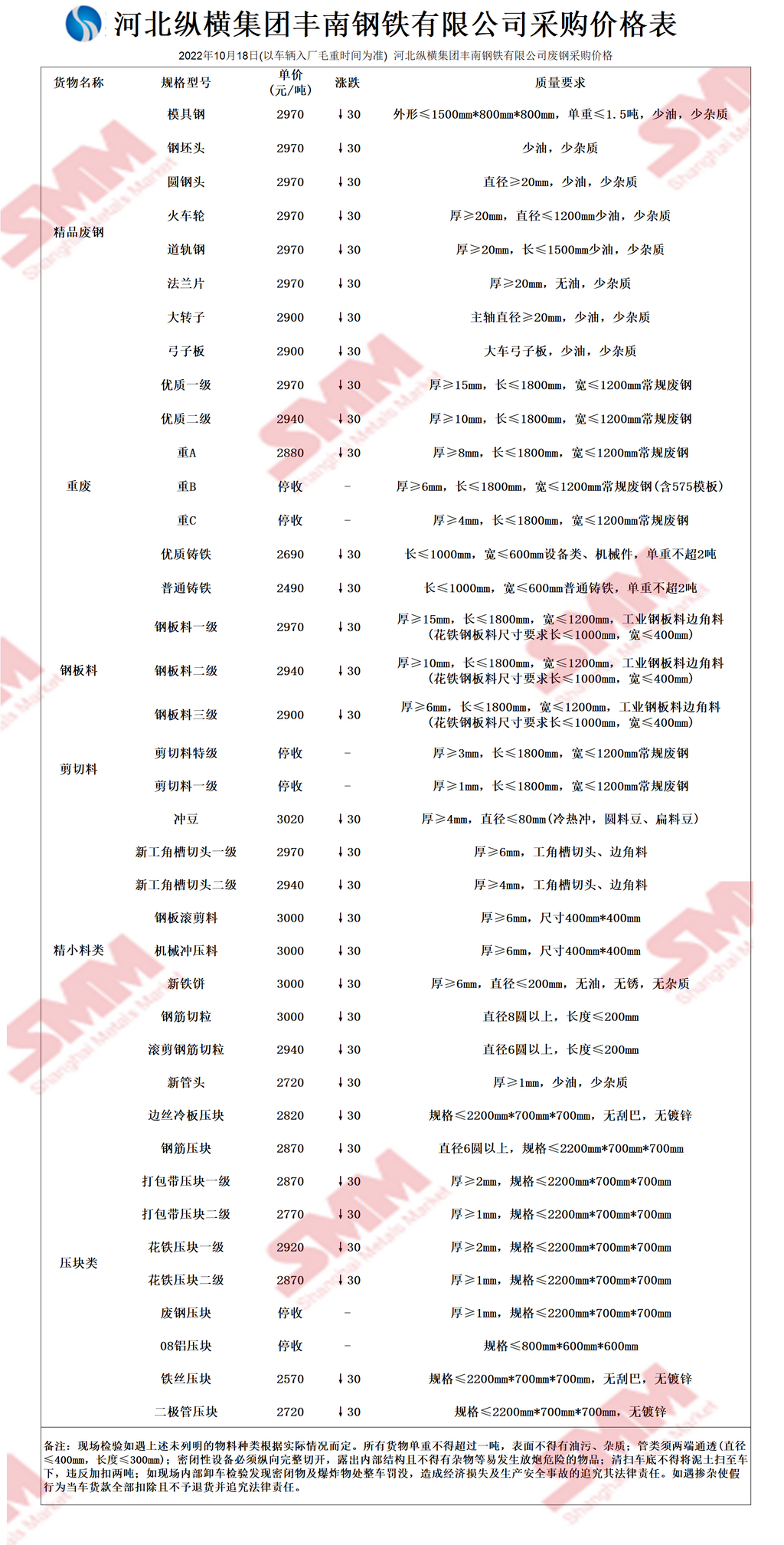 10月18日河北纵横集团丰南钢铁 废钢采购报价