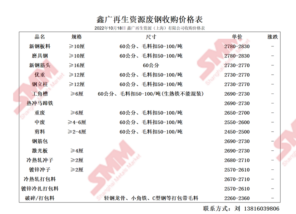 今日 鑫广再生资源(上海)有限公司 废钢收购报价已更新,有货的朋友欢迎联系我们!