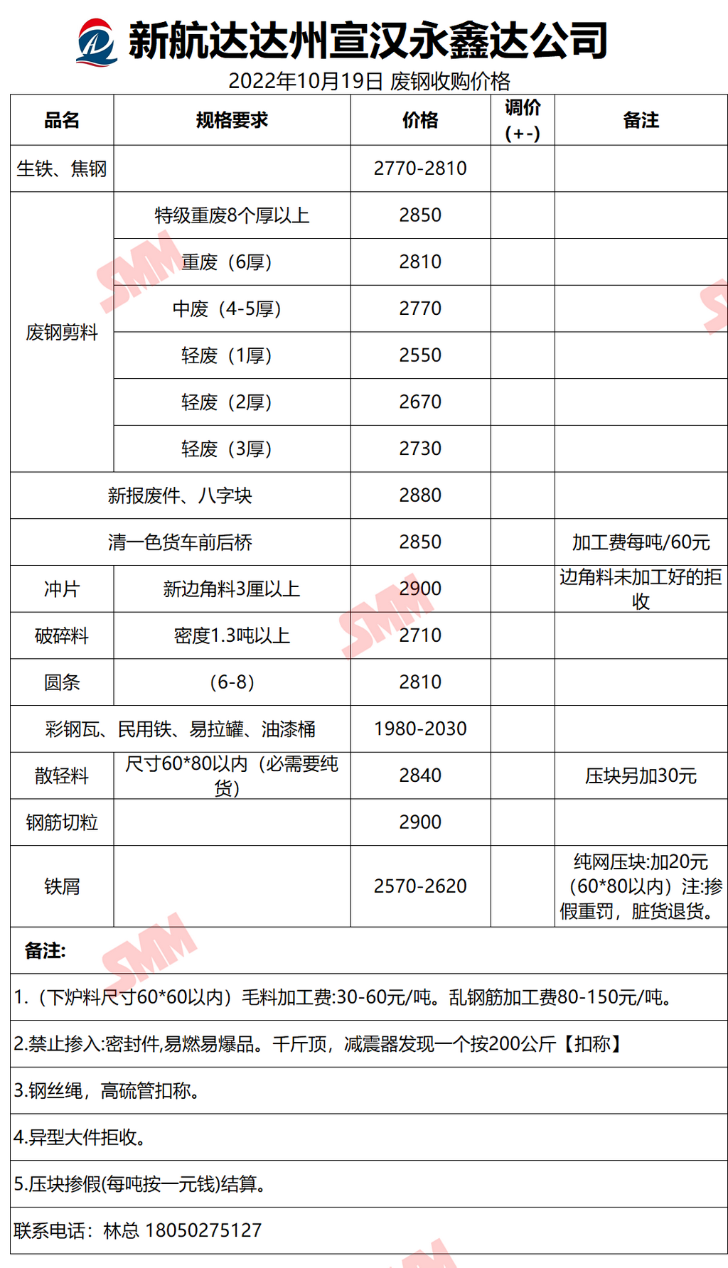 10月19日达州宣汉永鑫达 废钢收购报价
