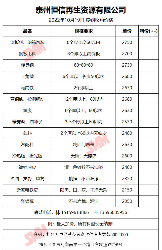 今日泰州恒信再生资源有限公司 废钢收购报价已更新,有货的朋友欢迎联系我们!