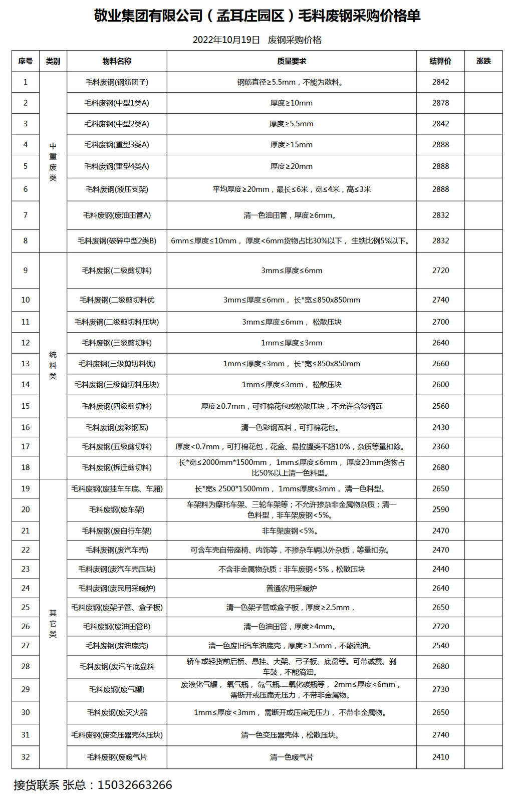 今日 敬业钢铁(孟耳庄园区) 废钢采购报价已更新,有货的朋友欢迎联系我们!