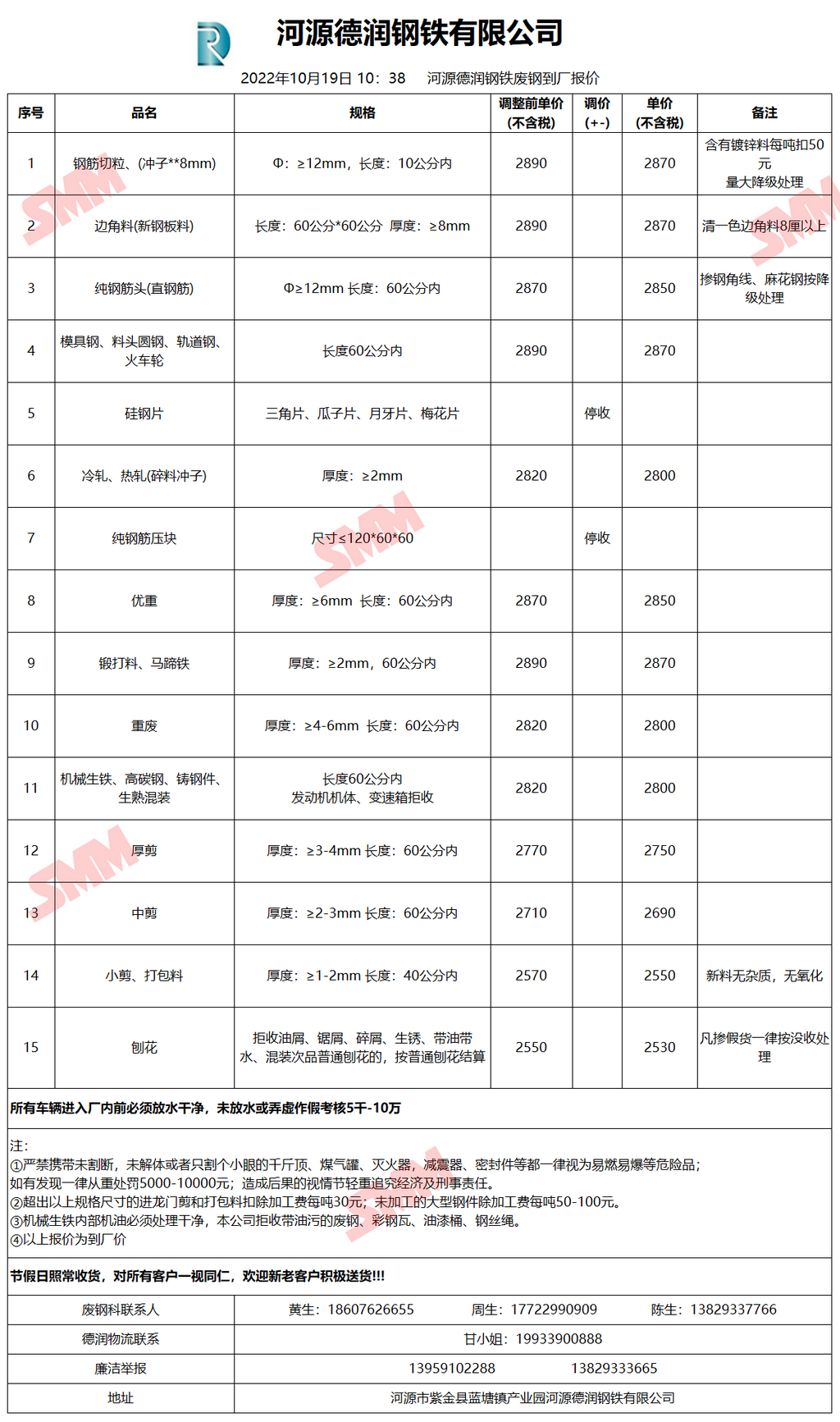 今日河源德润钢铁 废钢收购报价已更新,有货的朋友欢迎联系我们!