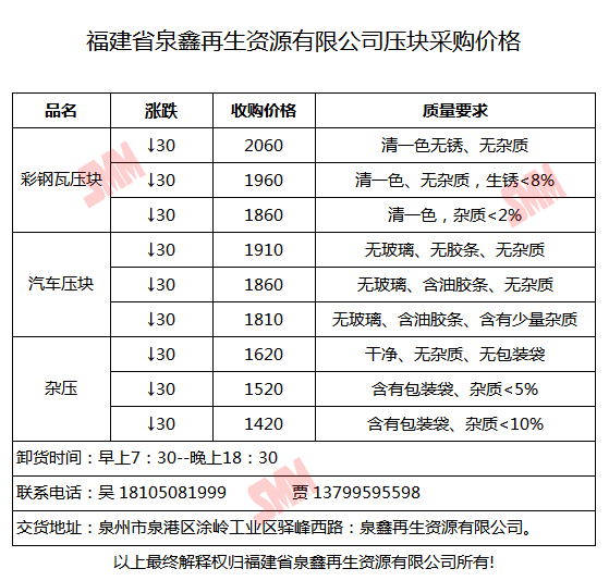 再生金属企业报价合作需求,欢迎联系:13585952056 王