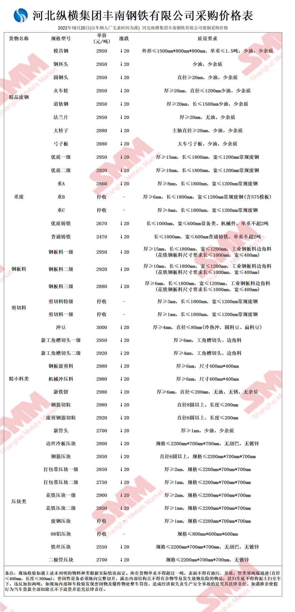 10月20日河北纵横集团丰南钢铁 废钢采购报价