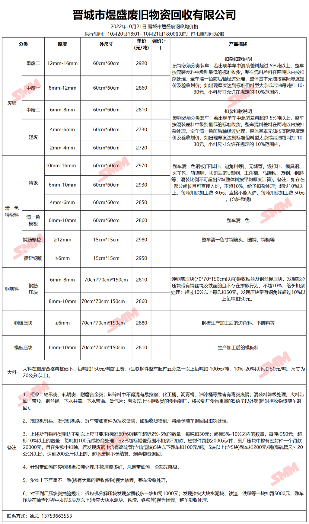今日晋城市煜盛 废钢收购报价已更新,有货的朋友欢迎联系我们!
