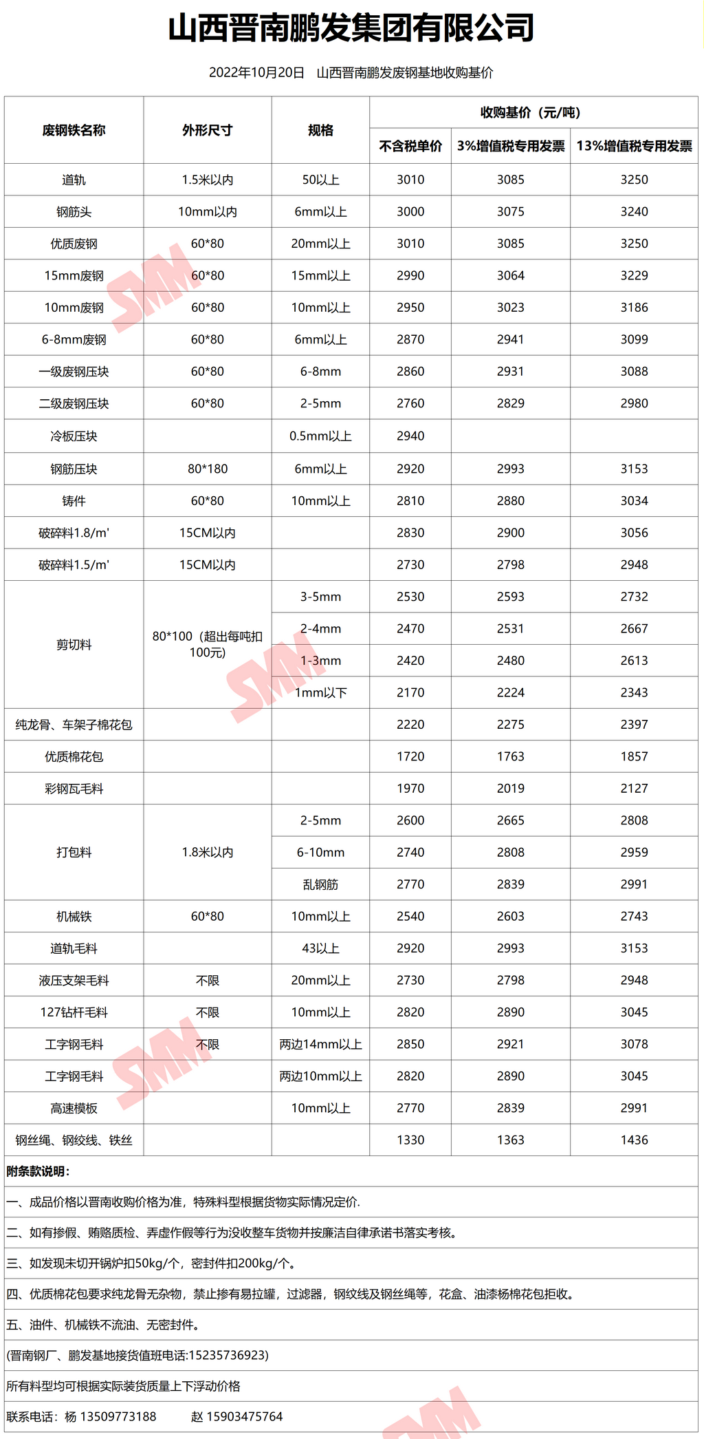 10月20日晋南鹏发 废钢收购报价