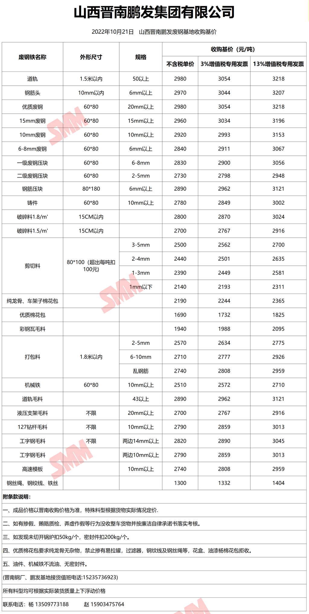 10月21日晋南鹏发 废钢收购报价