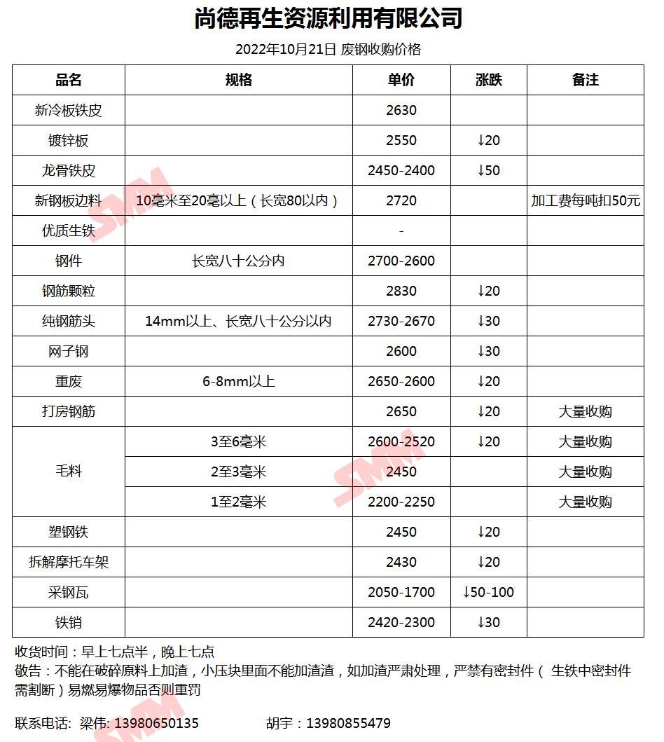 今日 尚德再生资源 废钢收购价格已更新,有货的朋友欢迎联系我们!