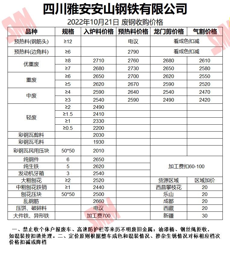 4月3日鑫泉钢铁(原绵竹金泉钢铁) 废钢采购报价