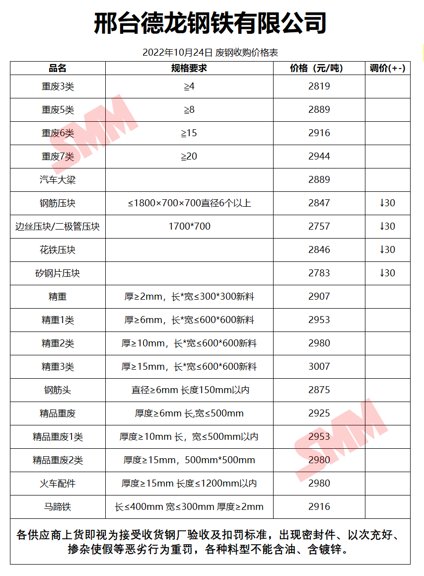 10月24日邢台德龙钢铁 废钢收购报价