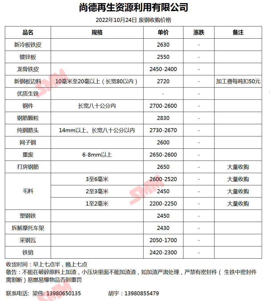 10月24日 尚德再生资源 废钢收购报价