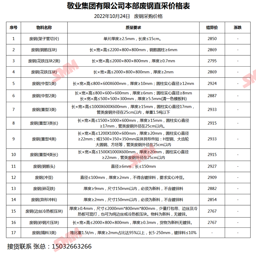 今日 敬业钢铁本部 废钢采购报价已更新,有货的朋友欢迎联系我们!
