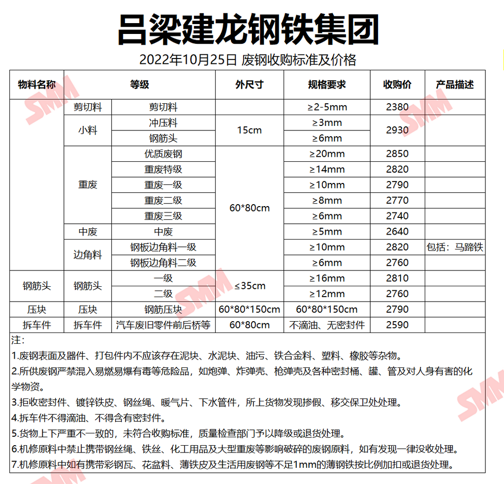 今日吕梁建龙钢铁 废钢收购报价已更新,有货的朋友欢迎联系我们!
