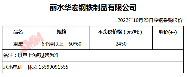 今日丽水华宏钢铁制品有限公司废钢采购报价已更新,有货的朋友欢迎联系我们!
