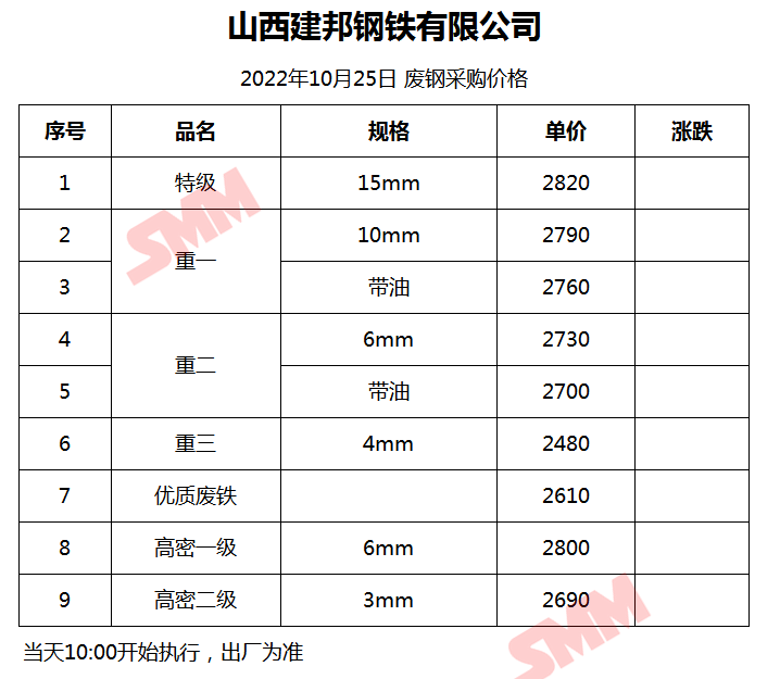 10月25日山西建邦钢铁 废钢收购报价