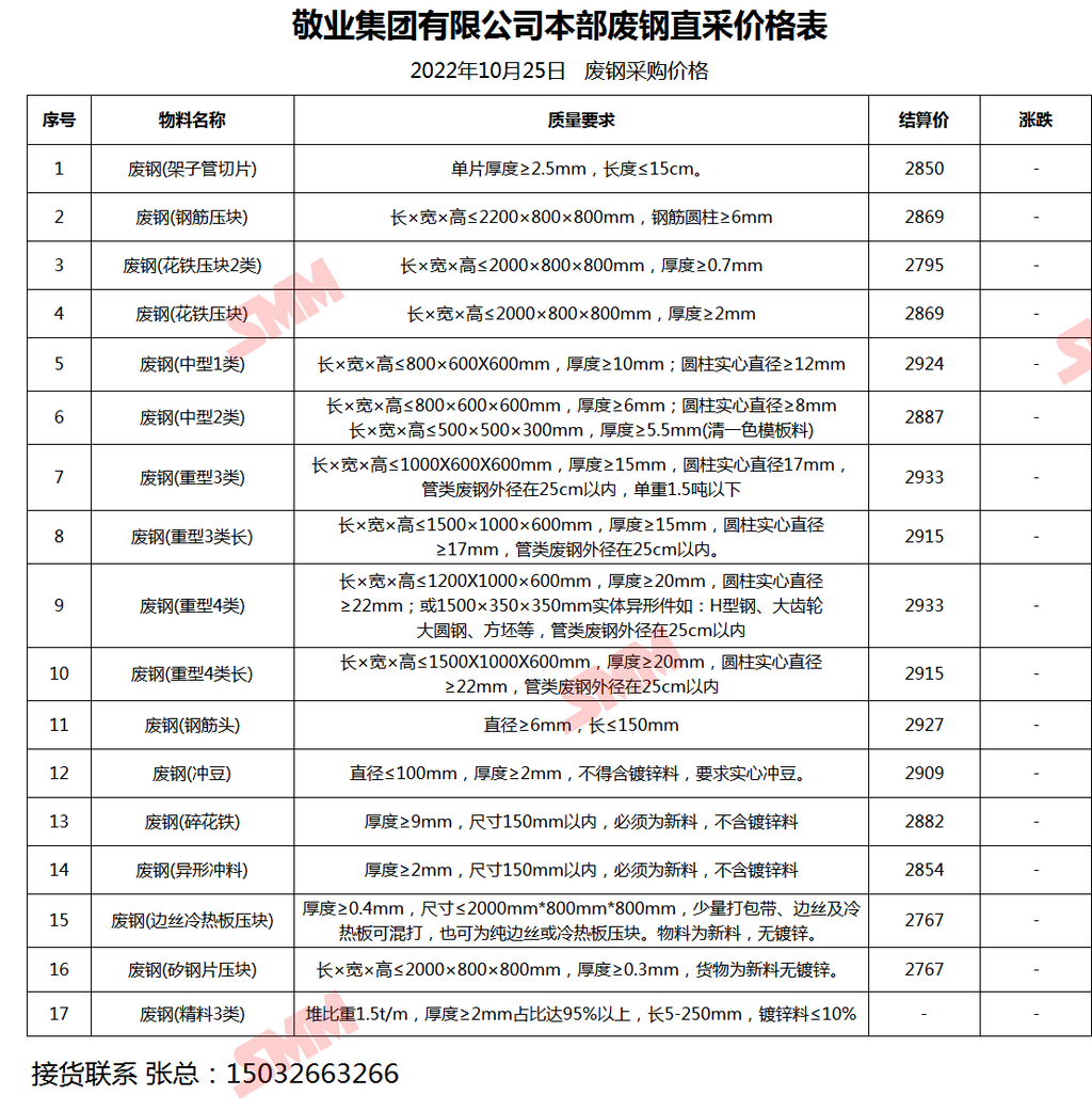 今日 敬业钢铁本部 废钢采购报价已更新,有货的朋友欢迎联系我们!