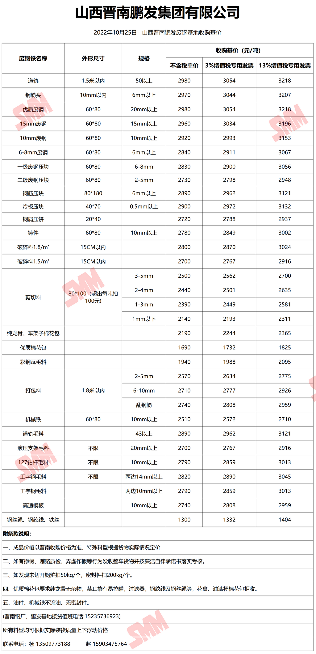 10月25日晋南鹏发 废钢收购报价