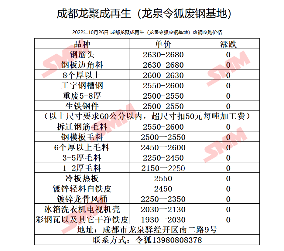 今日成都龙聚成再生(龙泉令狐废钢基地)废钢收购价格已更新,有货的朋友欢迎联系我们!
