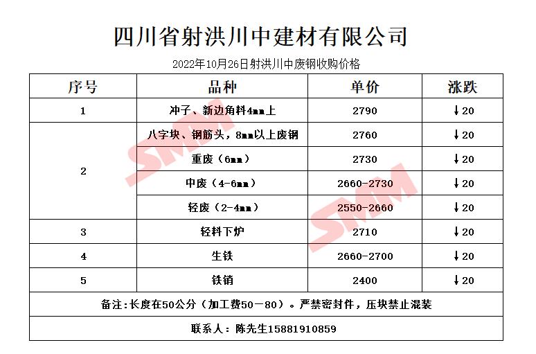 10月26日 四川射洪川中 废钢收购价格