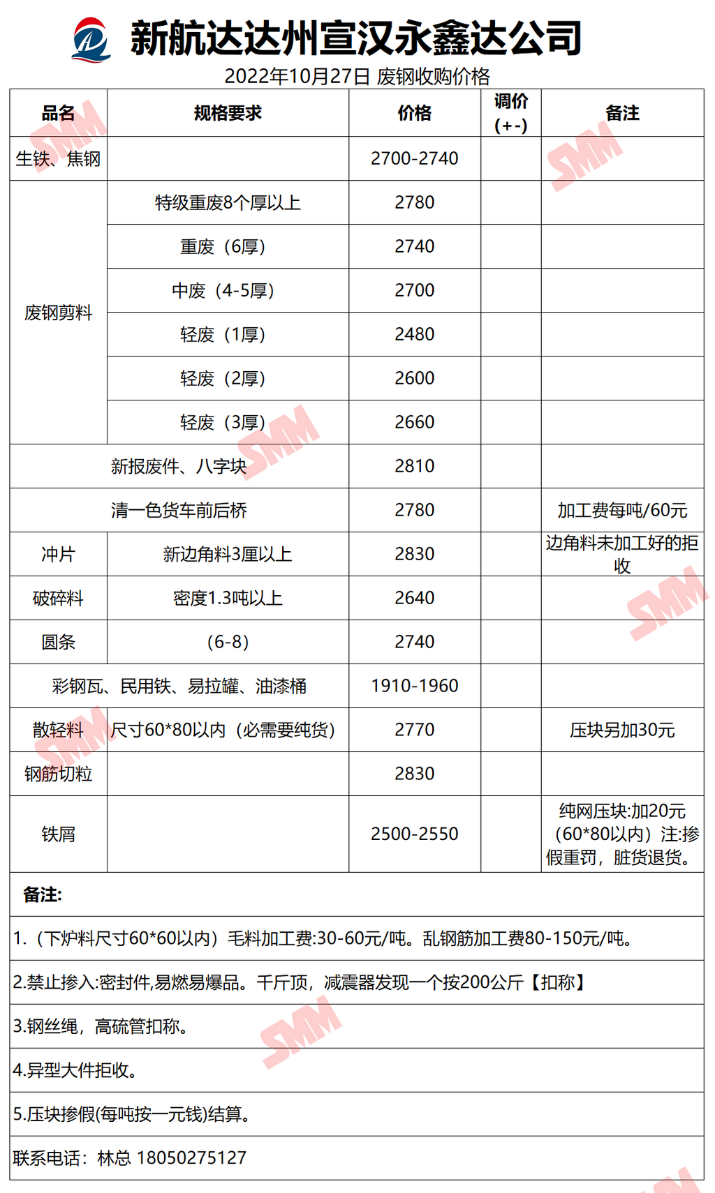 今日达州宣汉永鑫达 废钢收购报价已更新,有货的朋友欢迎联系我们!