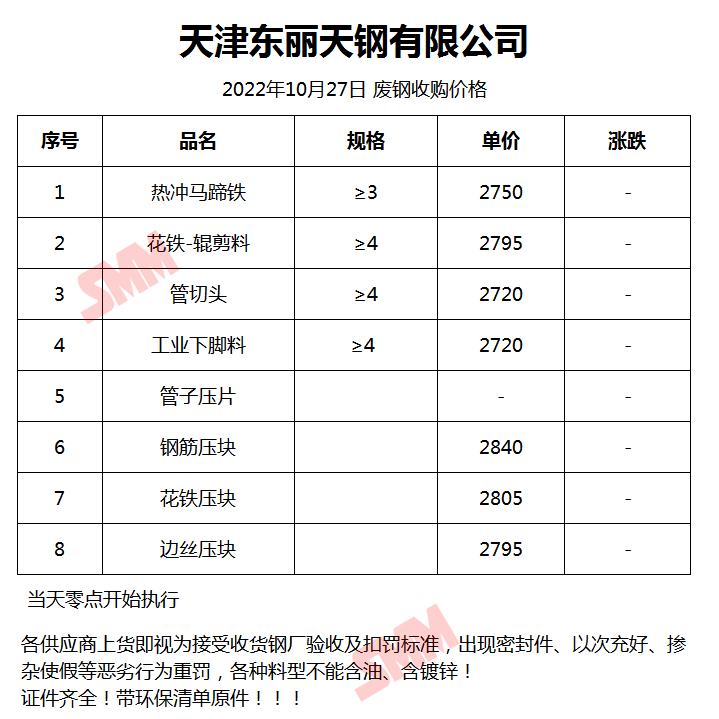 10月27日天津东丽天钢 废钢收购报价