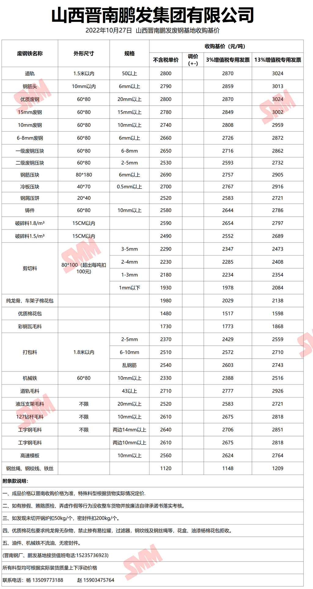 10月27日晋南鹏发 废钢收购报价