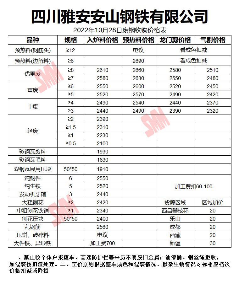 4月2日11时 雅安安山钢铁 废钢收购报价