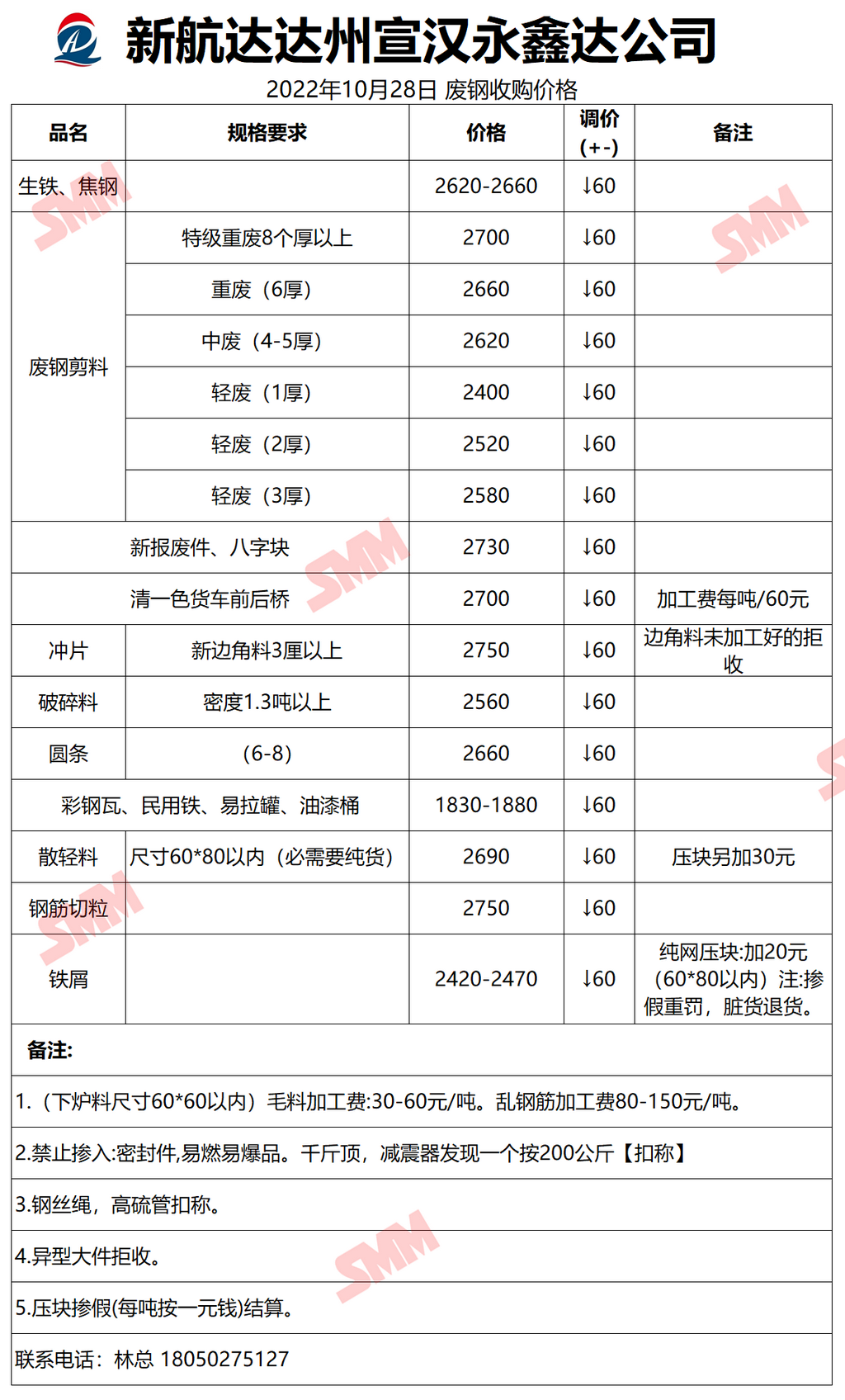 今日达州宣汉永鑫达 废钢收购报价已更新,有货的朋友欢迎联系我们!