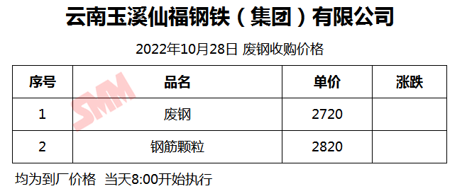 10月28日仙福钢铁 废钢收购报价