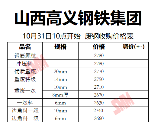 10月31日山西高义钢铁 废钢收购报价