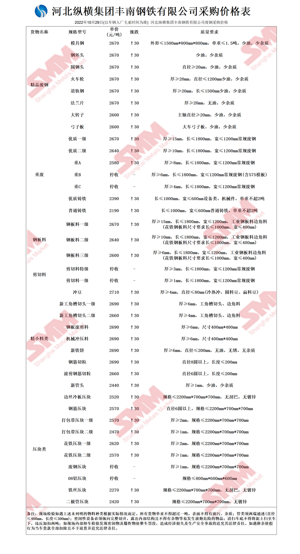 10月29日河北纵横集团丰南钢铁 废钢采购第二次报价