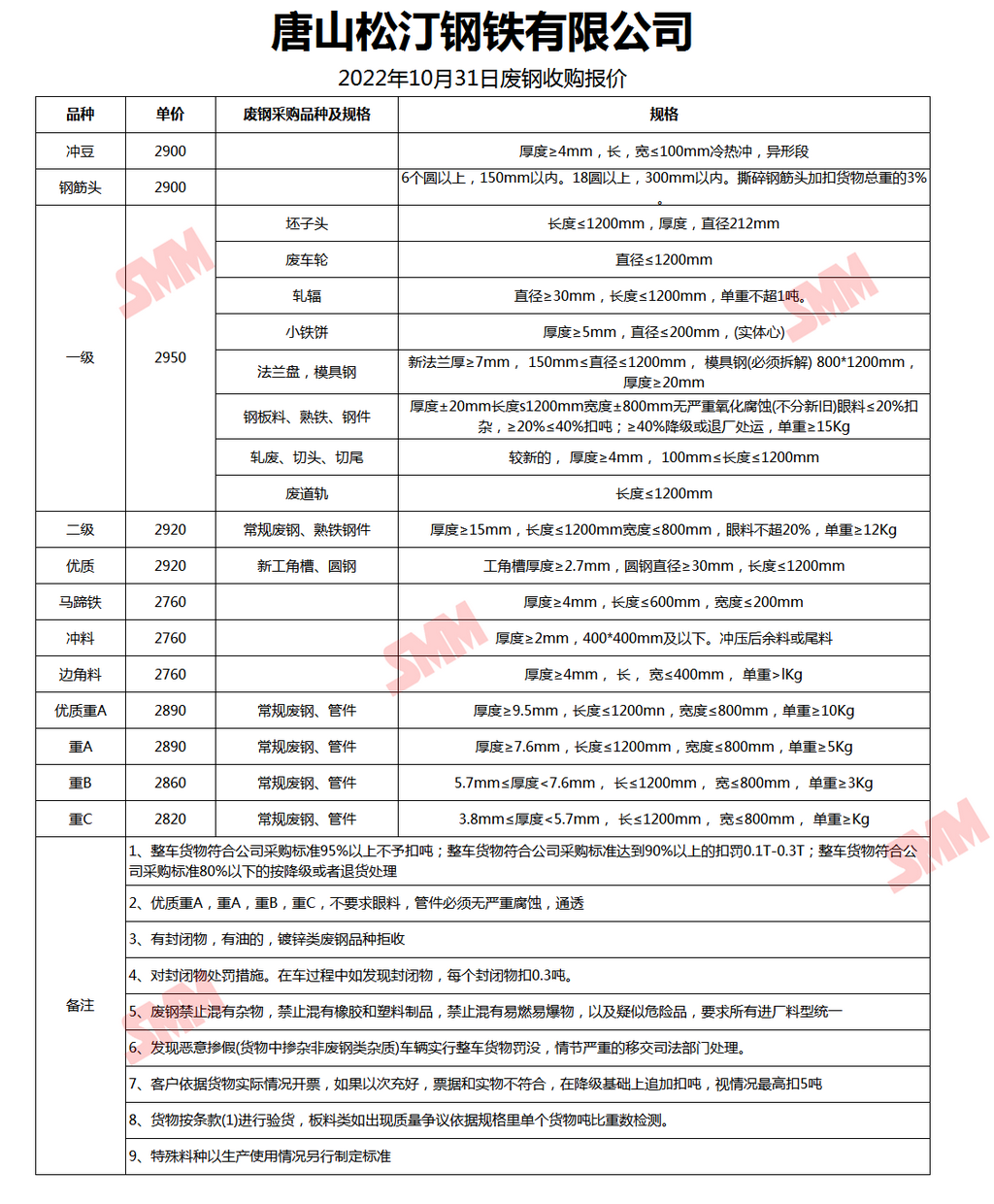 10月31日唐山松汀钢铁废钢收购报价