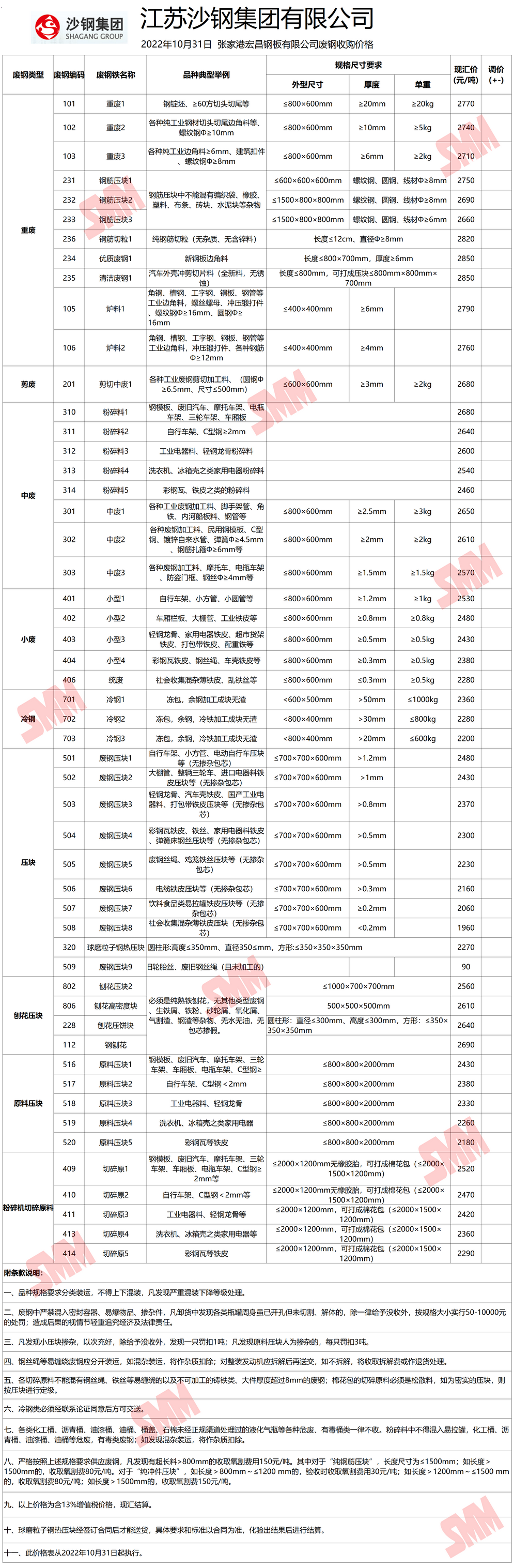 今日沙钢张家港基地 废钢收购报价已更新,有货的朋友欢迎联系我们!