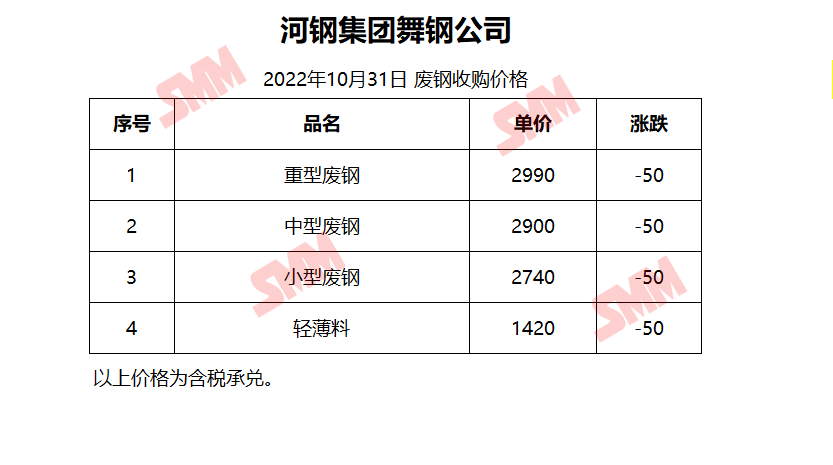 10月31日 河钢集团舞钢公司 废钢收购第二次报价