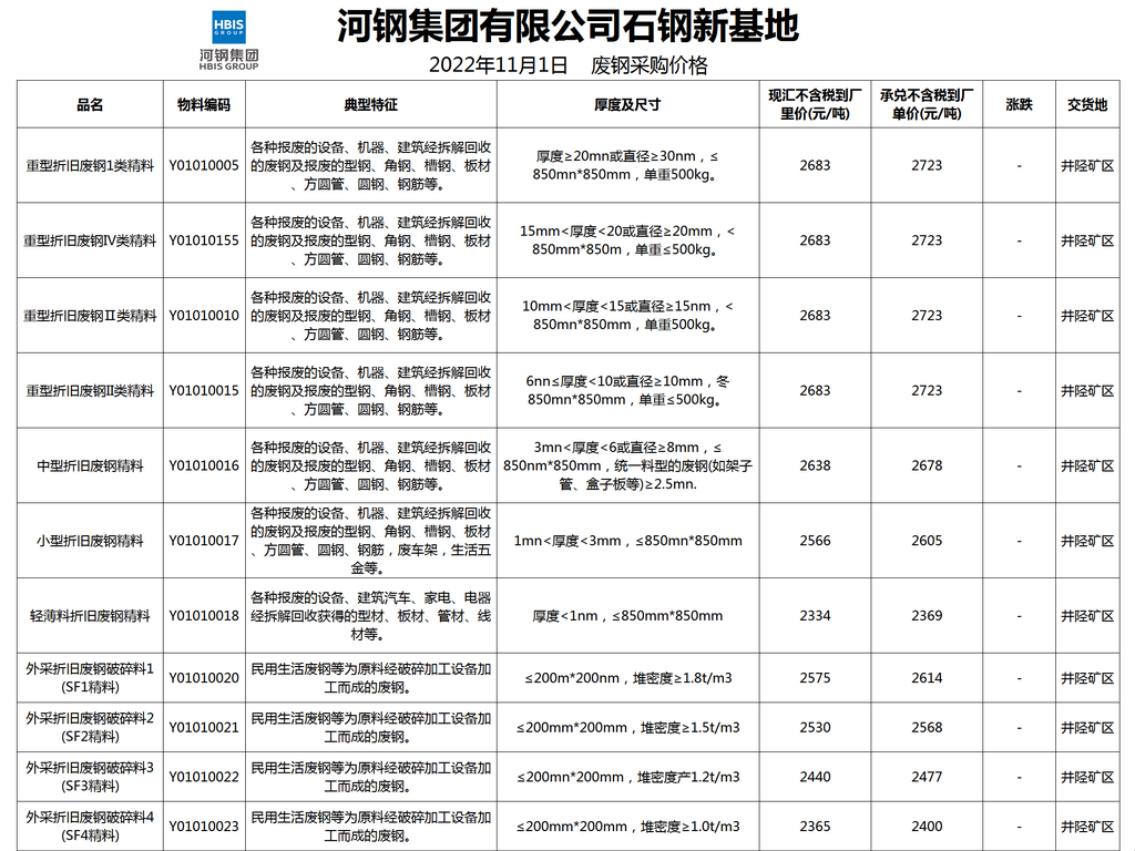 今日 河钢石钢新基地 废钢采购报价已更新,有货的朋友欢迎联系我们!