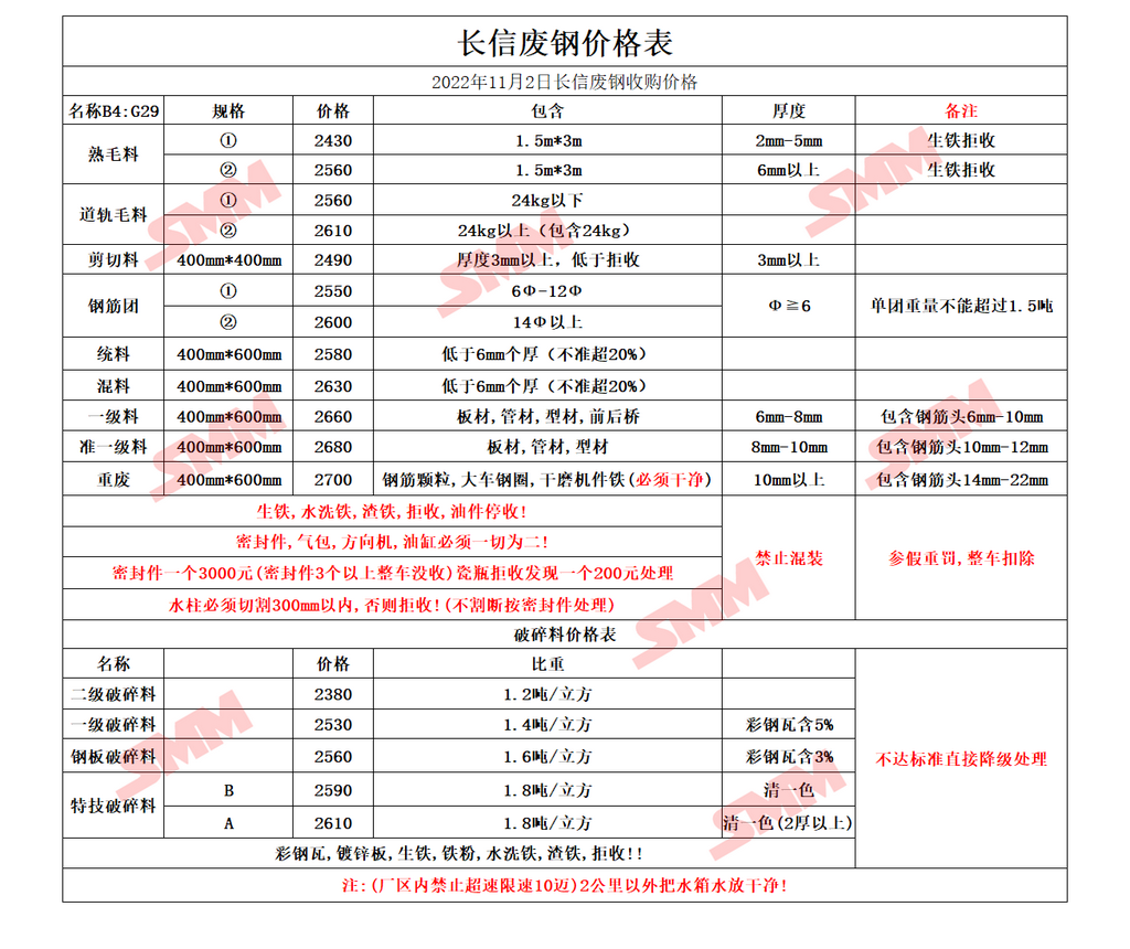 11月2日长信废钢 废钢采购报价
