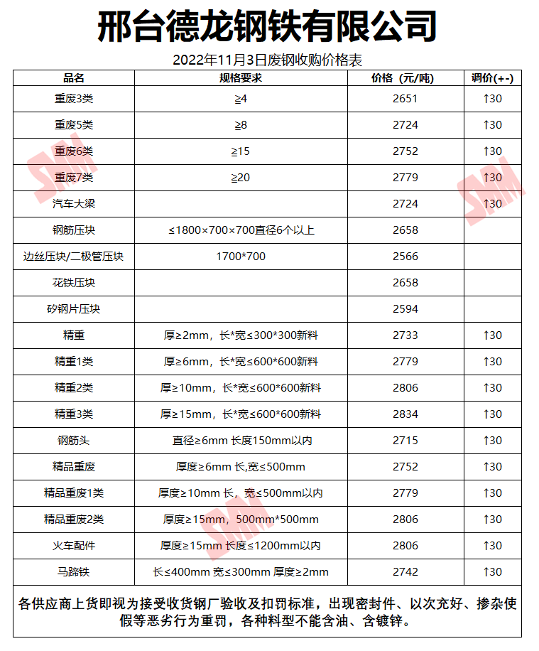 11月3日邢台德龙钢铁 废钢收购报价