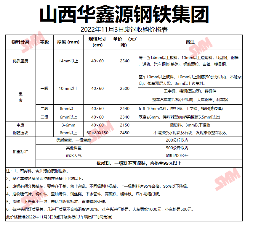 11月3日山西华鑫源钢铁 废钢收购报价