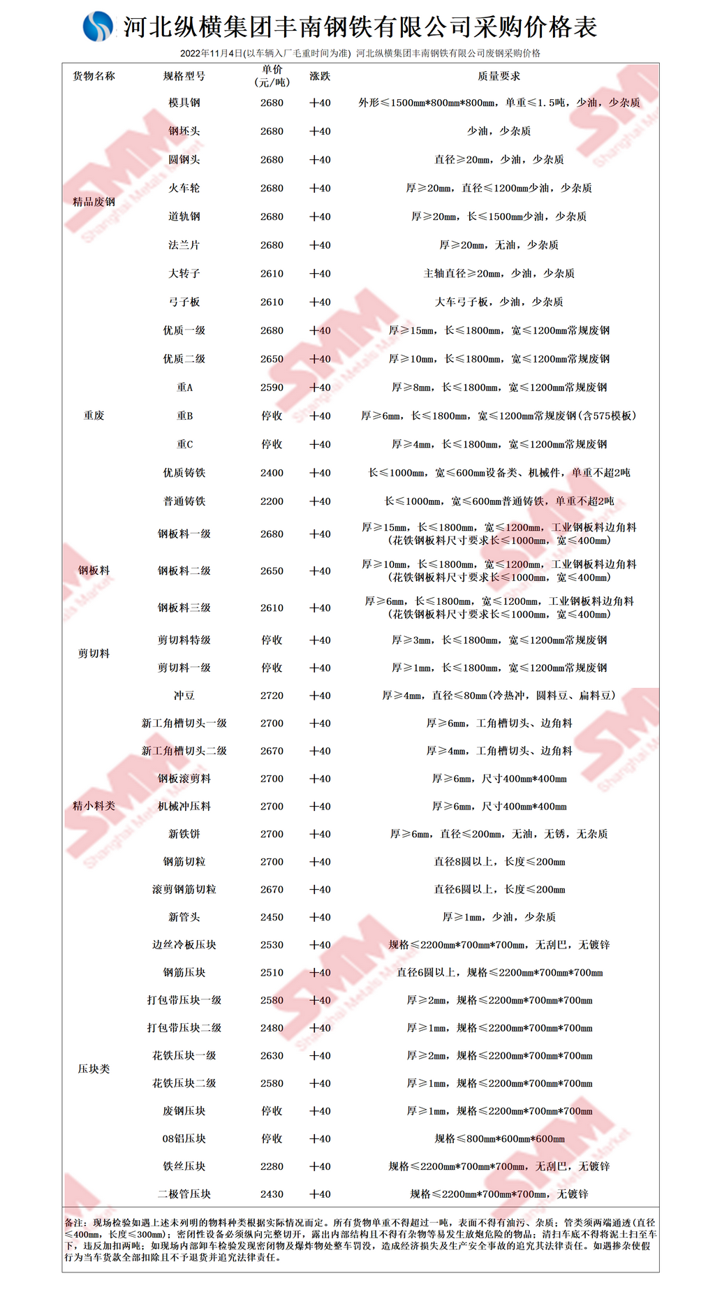 11月4日河北纵横集团丰南钢铁 废钢采购二次报价
