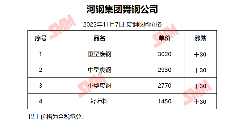 11月7日 河钢集团舞钢公司 废钢收购二次报价