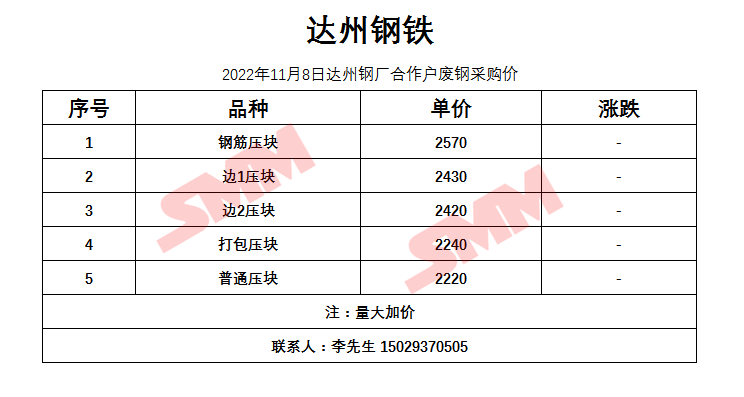 11月8日 达州钢铁 废钢收购报价