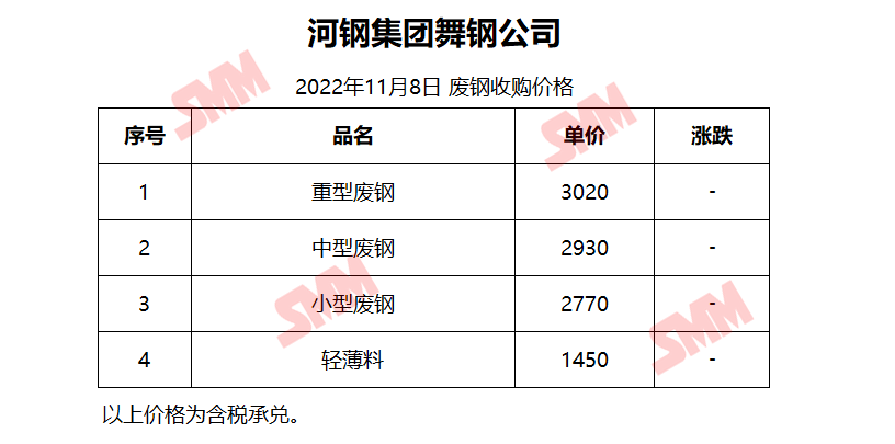 11月8日 河钢集团舞钢公司 废钢收购报价